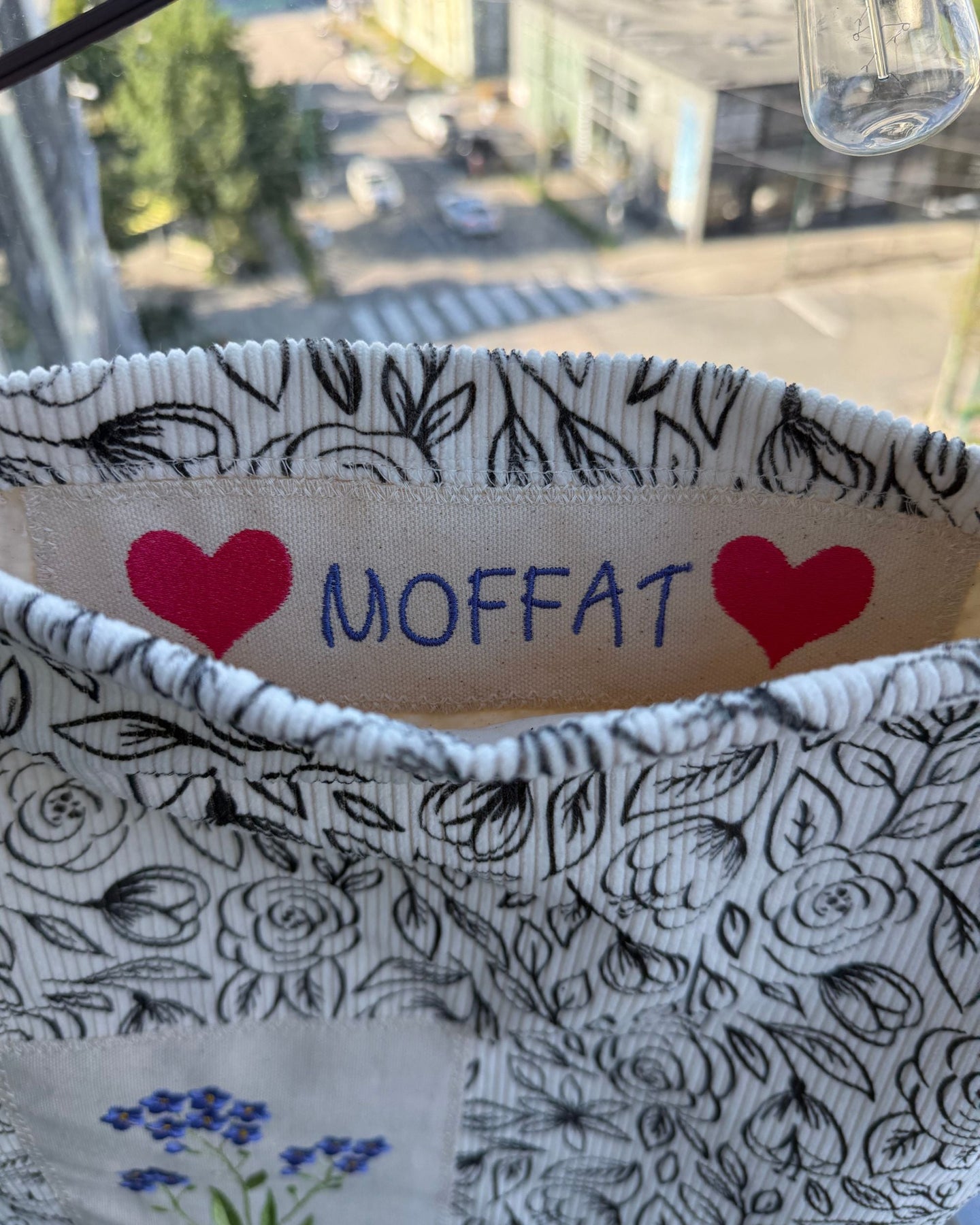 Crafted from moody, elegant Inked Rose corduroy ♻️, this tote features hand-embroidered little purple flowers, scattered like wild blooms on a forest floor. Fully lined for structure and strength, it’s perfect for market mornings, slow walks, or carrying a little softness through your day.
