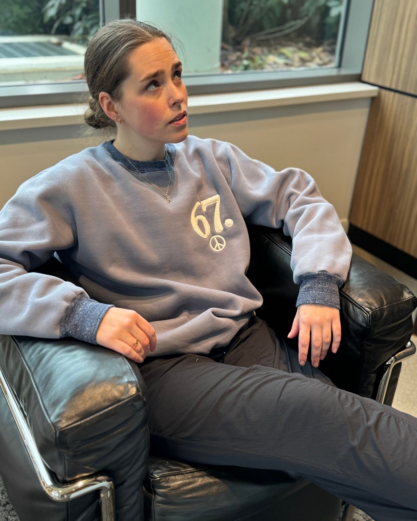 Waddle into warmth with The Quack 67. This soft, slow-made sweater features a hand-stitched "67." on the front and a bold embroidered duck taking a dip on the back — complete with a cheerful "QUACK". Cozy with personality, this piece is for peace-seekers with a playful side.